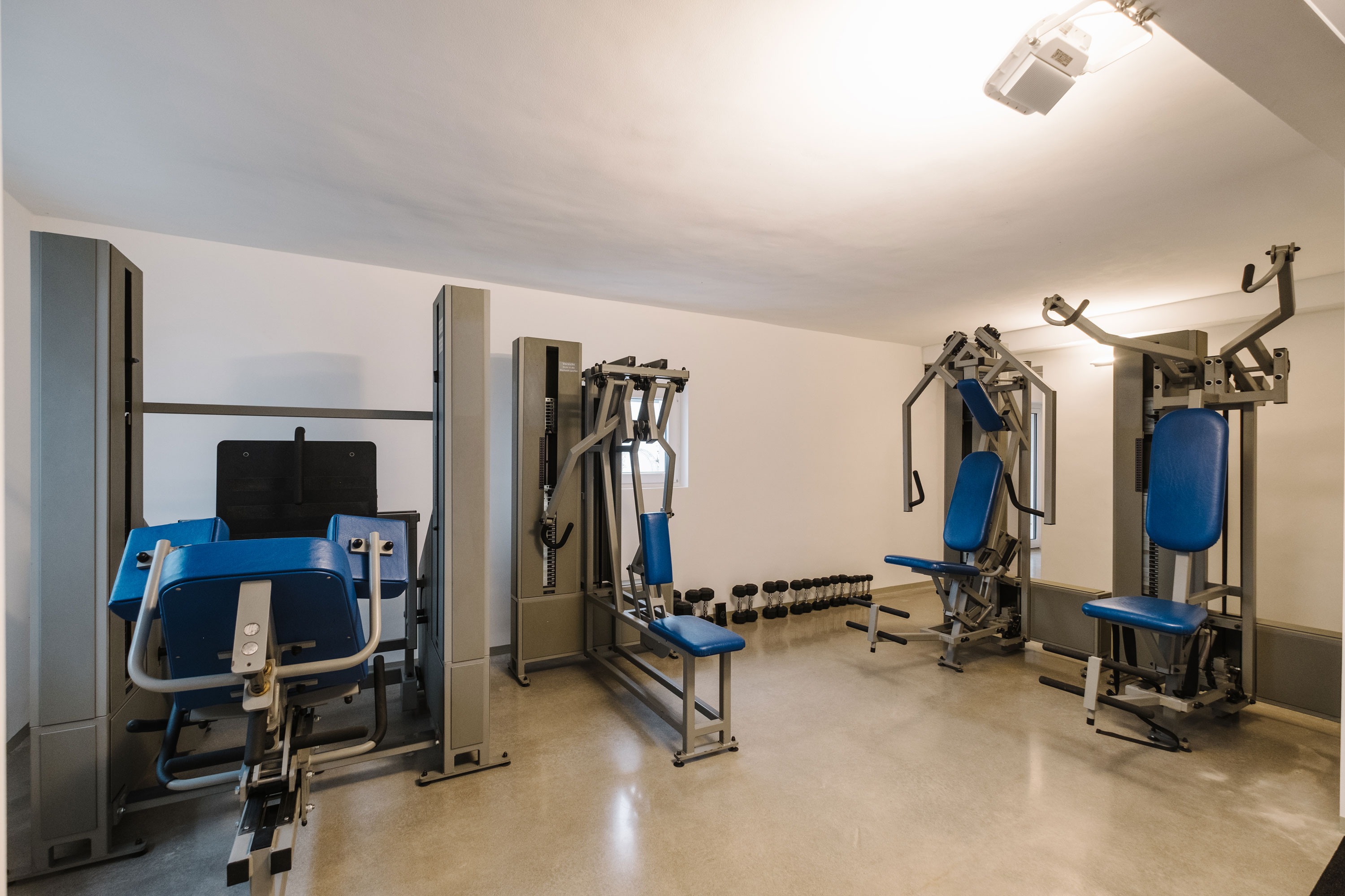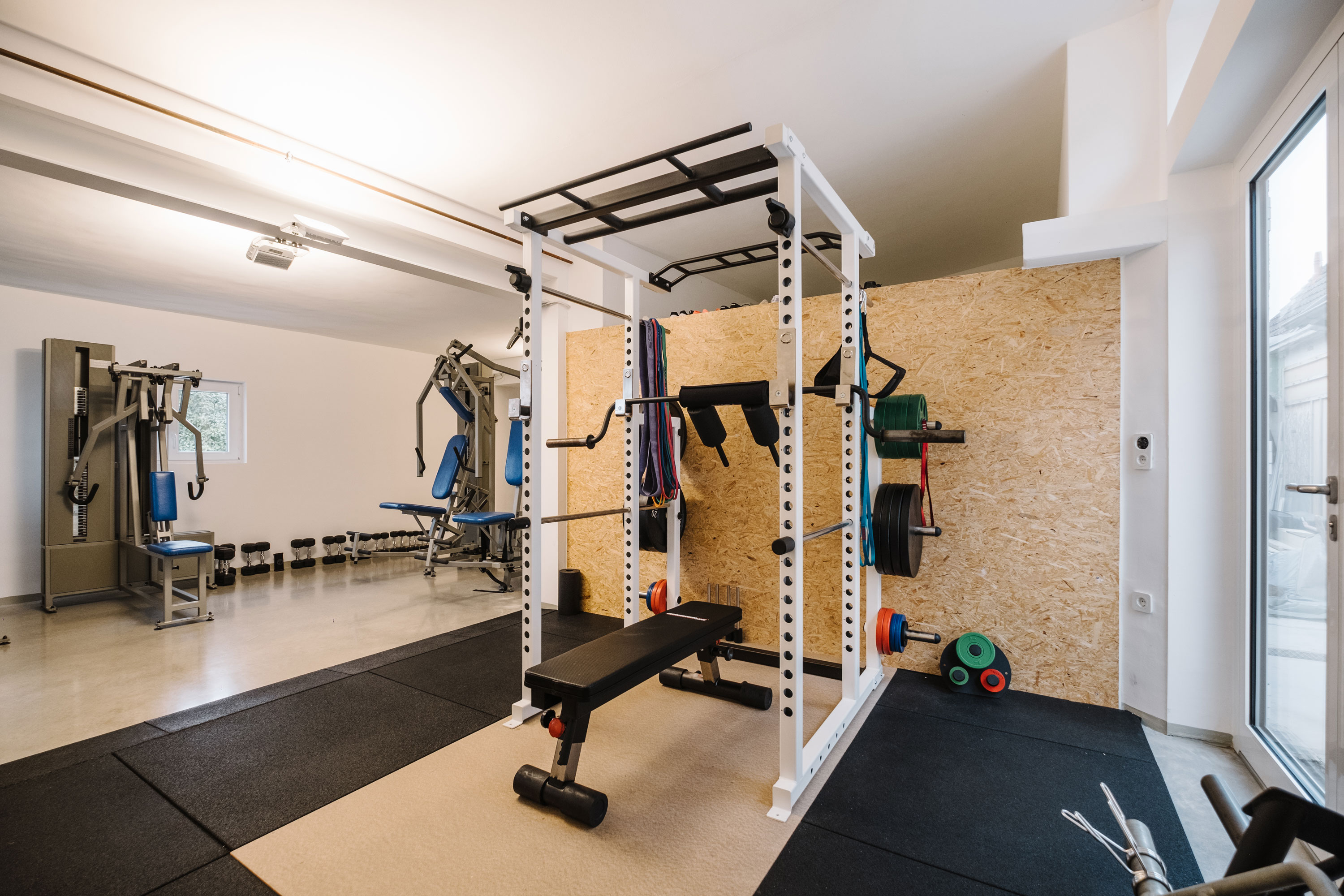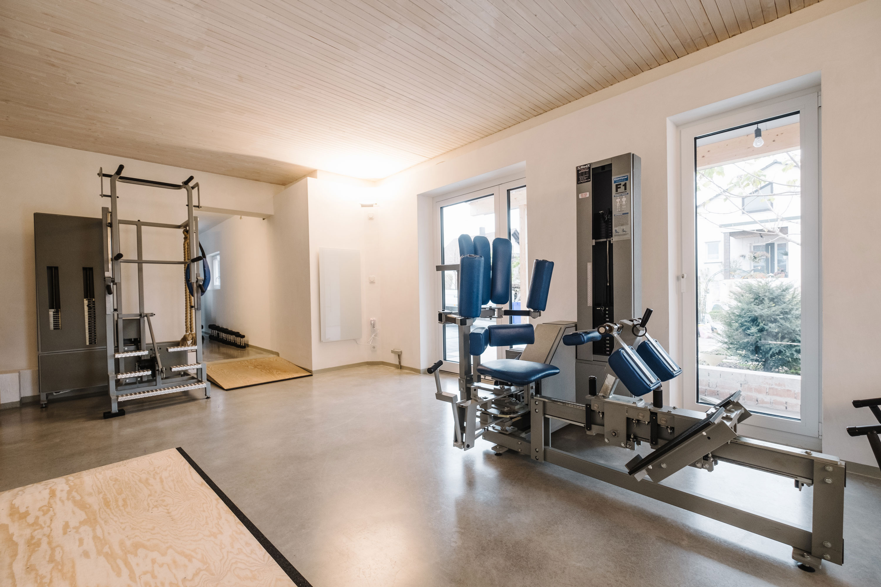 Wir arbeiten in meinem eigenen, top ausgestatteten Fitnessstudio.